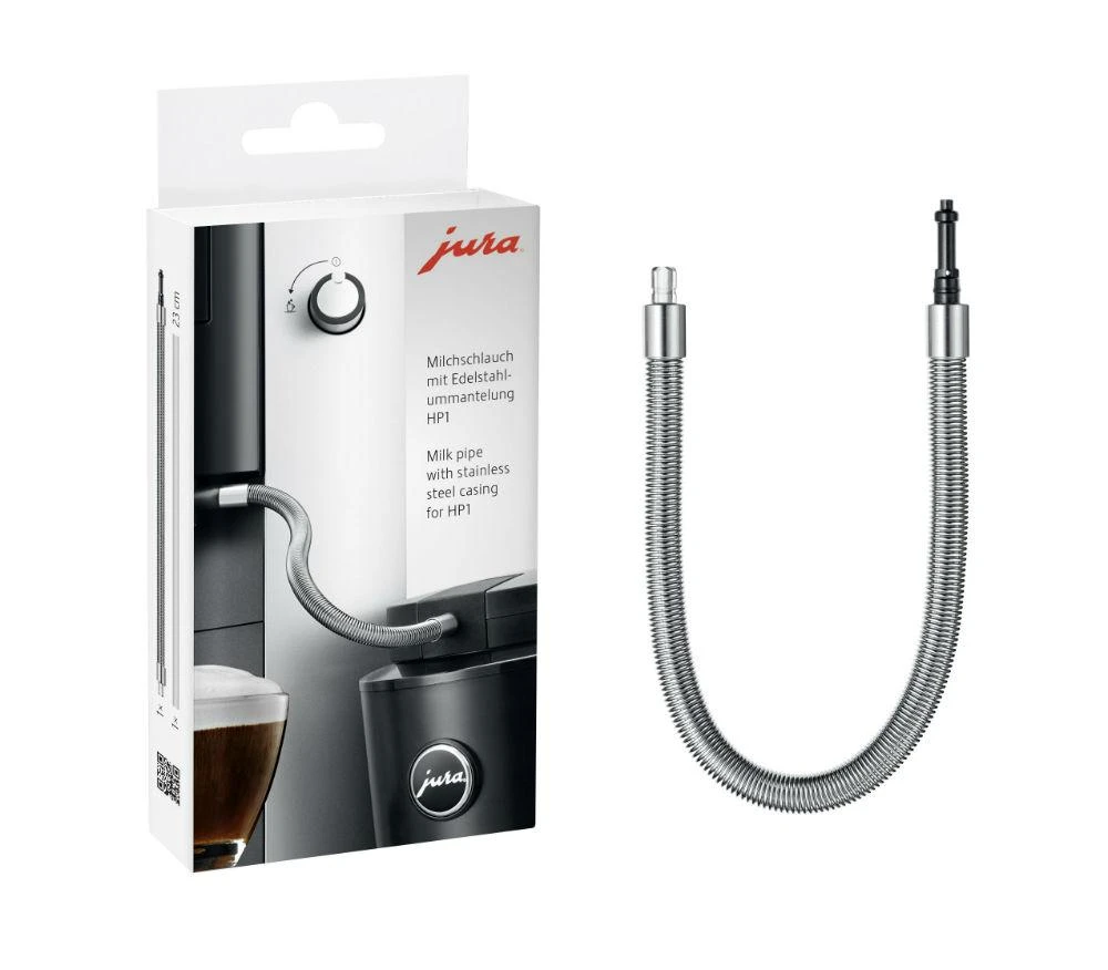 De JURA RVS melkslang HP1 beschermt tegen UV stralen die aanslag in de melkslang veroorzaken.