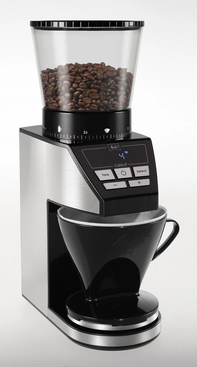 De Melitta Calibra is de eerste elektrische koffiemolen met ingebouwde weegschaal van Melitta. Bij het bereiden van goede koffie zijn versheid en de juiste hoeveelheden van essentieel belang. Voor het verkrijgen van aromatische koffie, volledig naar je eigen smaak, is de Calibra dan ook ideaal. Je kan met dit apparaat namelijk je favoriete koffiebonen vers malen en tot op de gram afwegen.